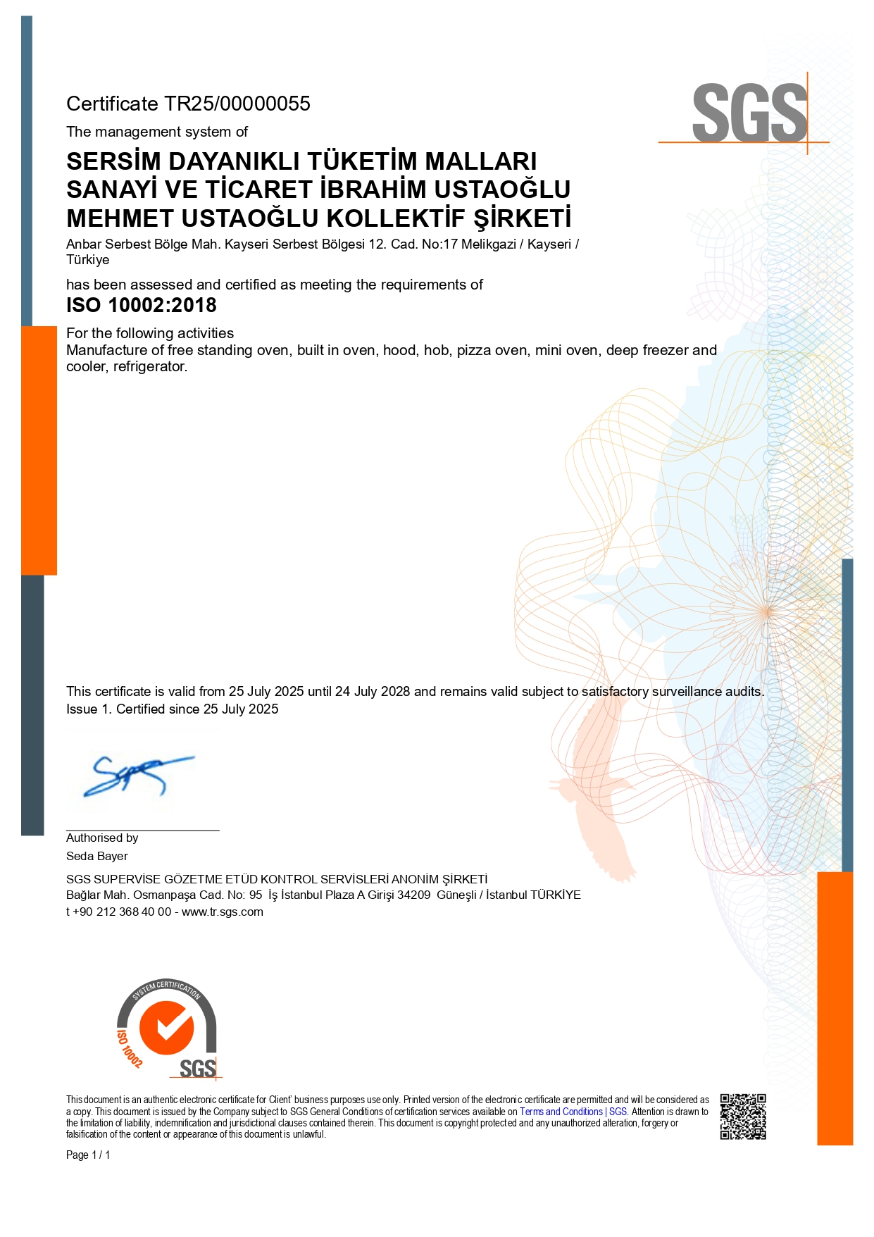 Sersim Dayanıklı Tüketim Malları San ve Tic. İbrahim USTAOĞLU Mehmet USTAOĞLU Koll. Şti olarak ulusal ve uluslararası pazarda müşteri beklentilerini karşılayan, kullanıcı güvenliğini ön planda tutan ürünler geliştirir, imal eder ve satış sonrasında hizmet veririz. Tüm faaliyet alanlarında ISO 9001 ve ISO 10002 gerekliliklerini uygulayarak, sürekli gelişmeyi ve iyileştirmeyi hedefleriz.